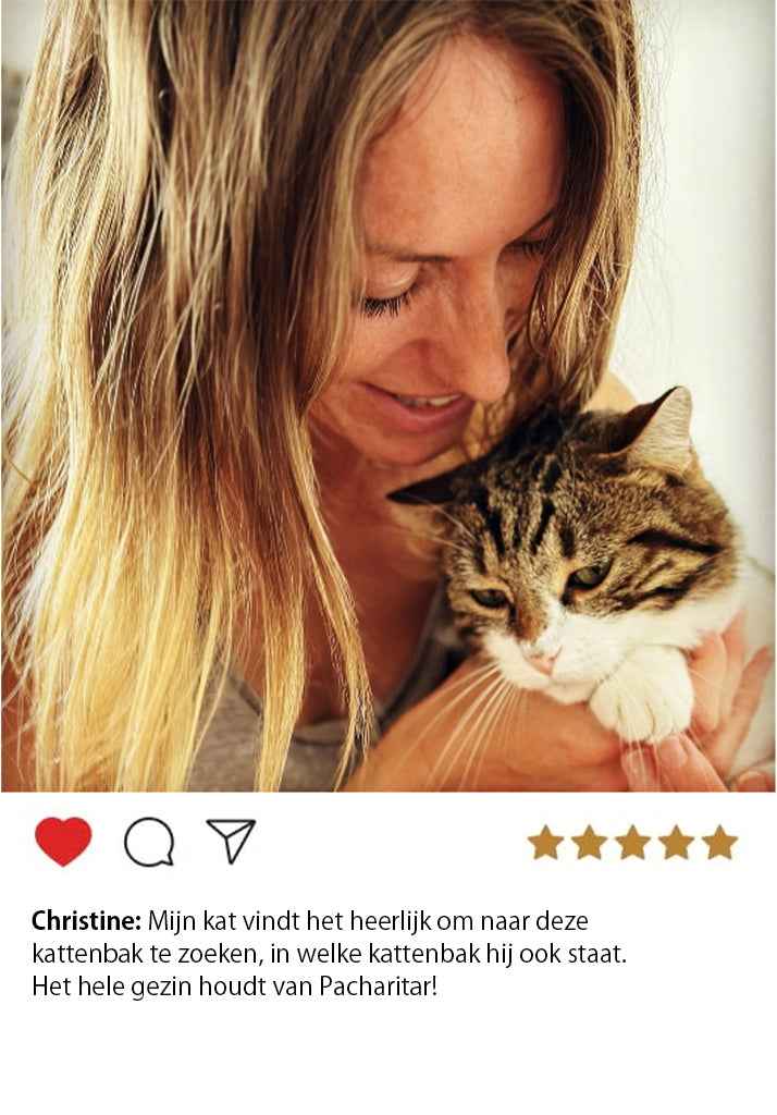 Met Pacha gaat een volle kattenbak per kat een hele maand mee.