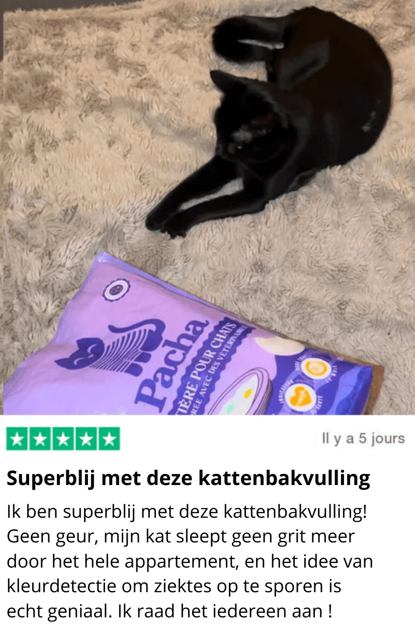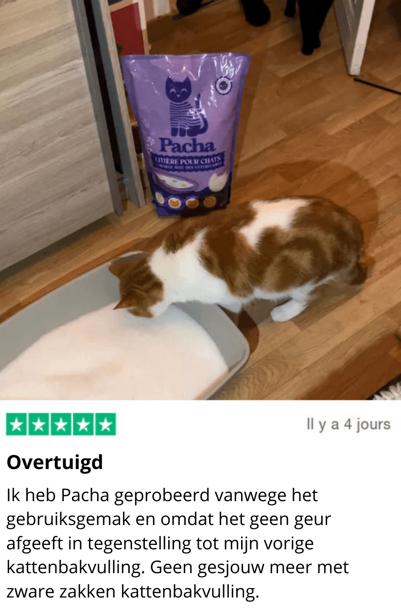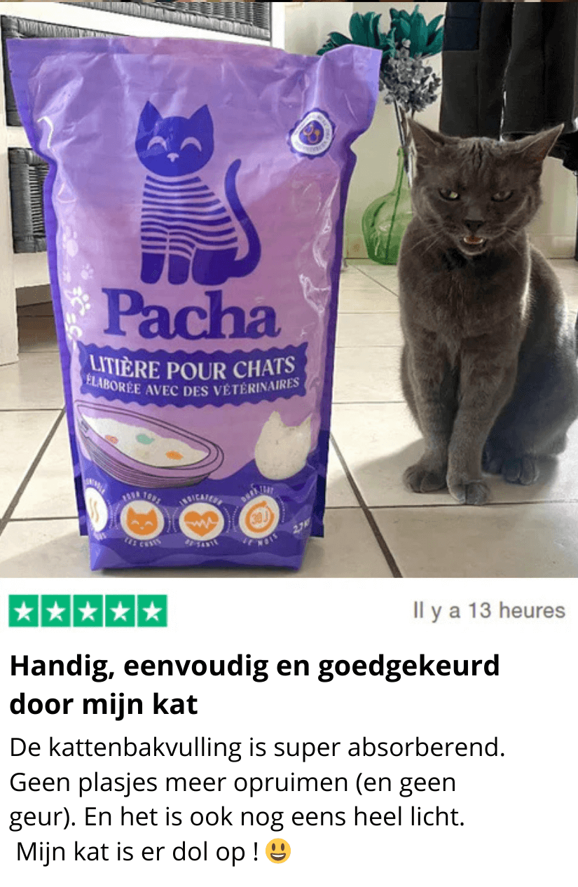 Pacha werkt anders. Het is een niet-klonterende formule: je hoeft alleen de poep op te ruimen en het strooisel dagelijks even om te scheppen. Simpel!